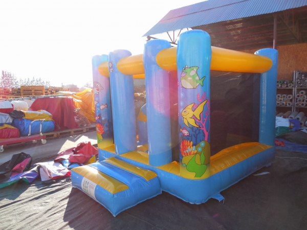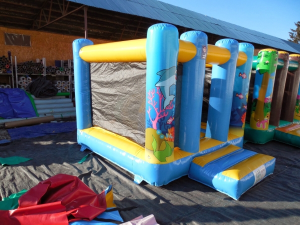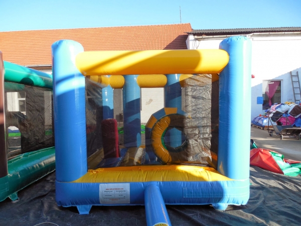 3,8(m)L x 3(m)D x 2,5(m)H. Hoppeslott og hav, en populær kombinasjon. Hoppeslottet levert uten hinder: Plass til 4 til 6 barn om gangen avhengig av alder. Hoppeslottet levert med hinder: Plass til 2 til 4 barn om gangen avhengig av alder.