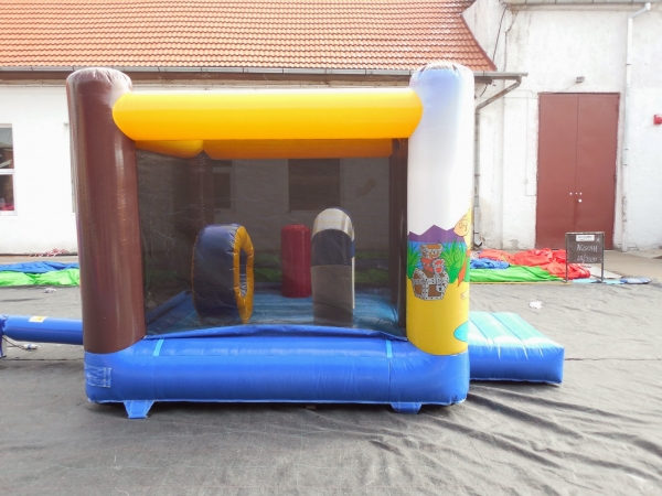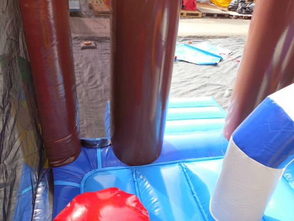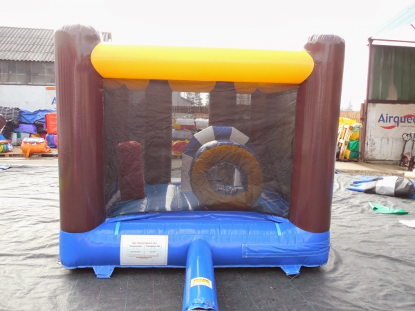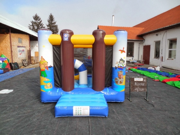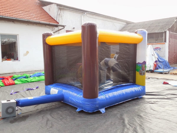 3,8(m)L x 3(m)D x 2,5(m)H. Budsjett hoppeslott med det evig populære pirat tema. Hoppeslottet levert uten hinder: Plass til 4 til 6 barn om gangen avhengig av alder. Hoppeslottet levert med hinder: Plass til 2 til 4 barn om gangen avhengig av alder.
