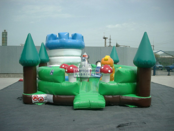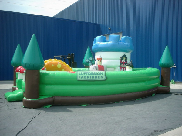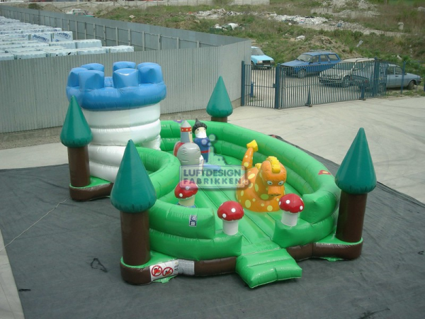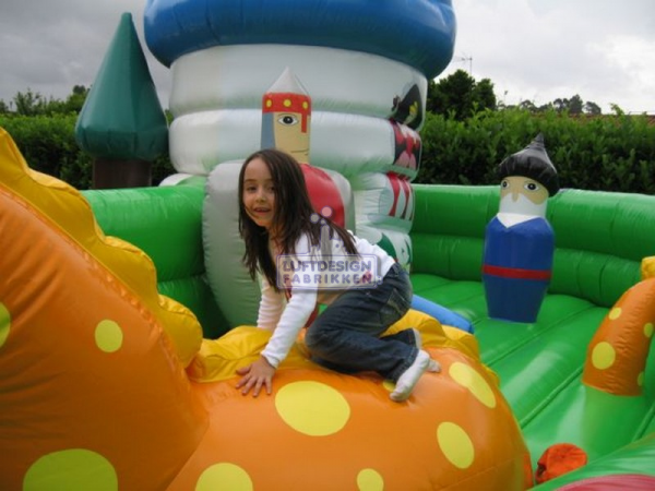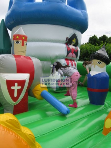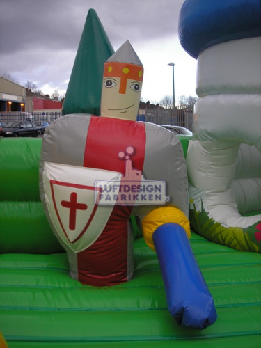7.4 (m)L x 5.1(m)B x 3 (m)H. Et magisk hoppeslott hvor barna kan hoppe, krype inn i borgen og sloss med den oppblåsbare ridder. Et hoppeslott med noe ekstra helt enkelt.