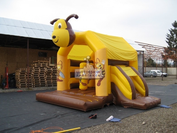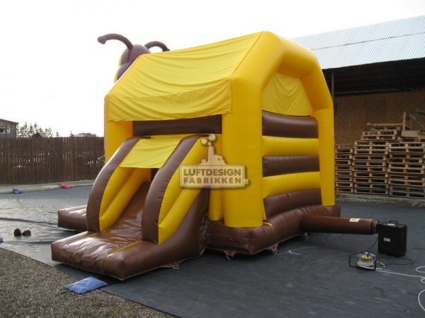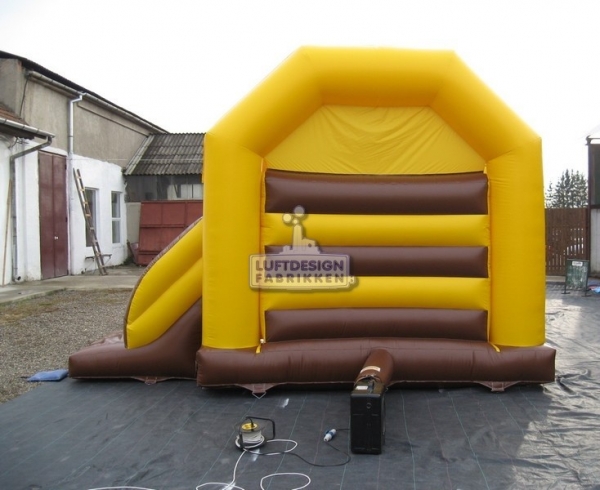 4,75 (m)B x 5,1 (m)L x 4,6 (m)H. Denne fargerike hoppeslottsklien har små hindre som gjør leken enda morsommere. Veldig artig lek for barna.