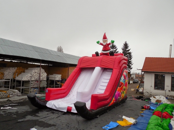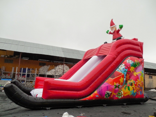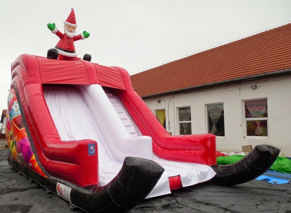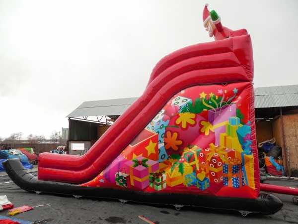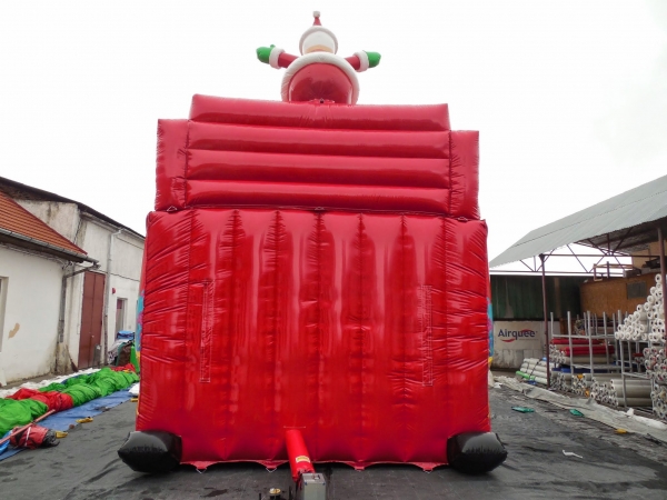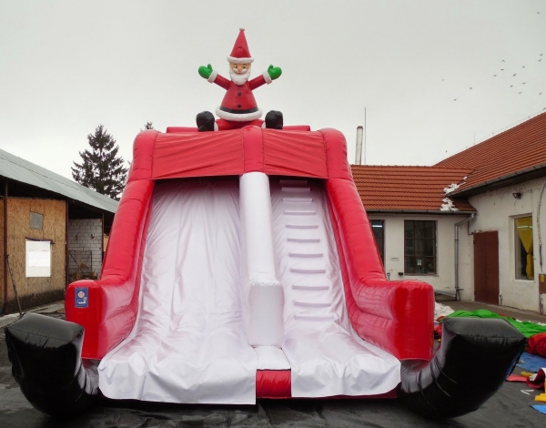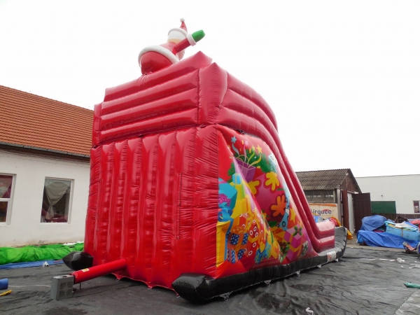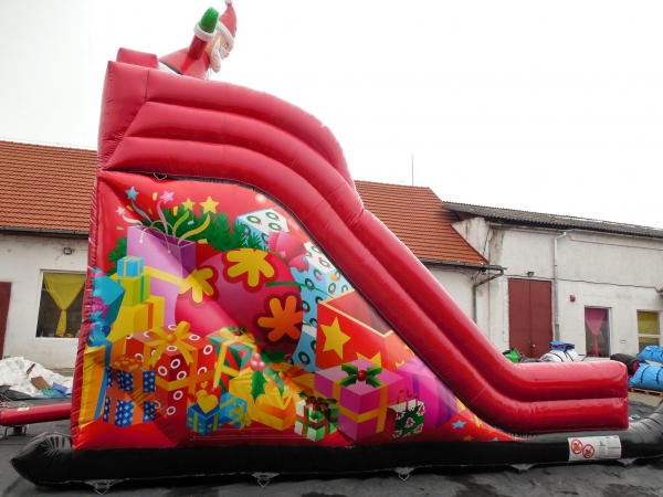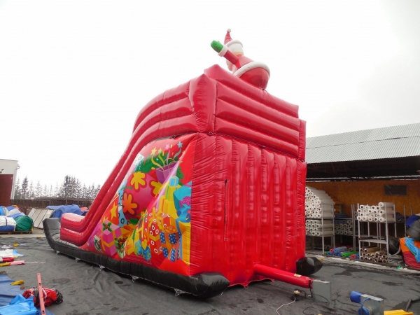 10(m)L x 5.5(m)B x 7.8(m)H. Nissen er på vei med glede til alle barna. Oppblåsbar sklie med julenissens slede som tema. Passer perfekt til å skape den gode julestemningen der hvor småbarn familiene ferdes.