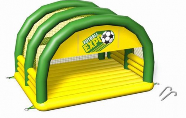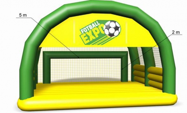 5(m)d x 7(m)B x 3,5(m)H En spiller skyter baller mot mål, og keeper skal prøve å redde skuddene. Målet er inni en oppblåsbar attraksjon, så her kan keeperen slenge seg helt uten fare for hard landing.