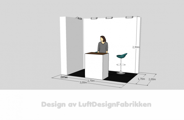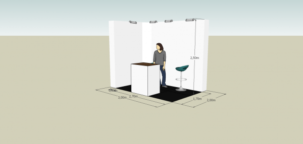 Messestand 8001 a 6 m² 3m(L) x 2m(D) x 2,5m(H).
