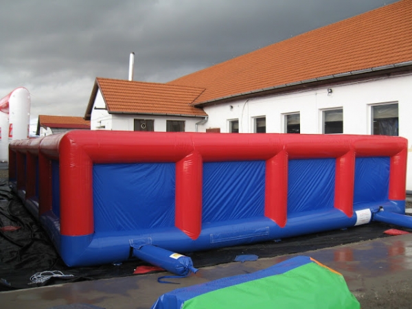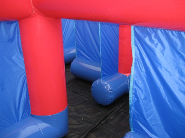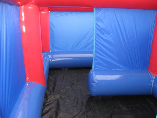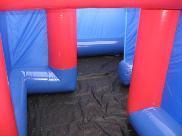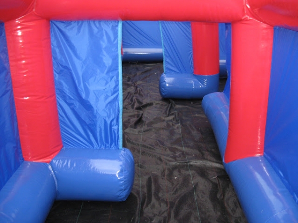 7.6(m)L x 12(m)B x 1,9(m)H. Barna elsker denne oppblåsbare labyrinten. Det er lett å gå seg vill på veien til enden. Noen veier fører deg nærmere utgangen, andre er bare blindgater. Adrenalinet koker! Labyrinten er populær både for voksne og barn. Konkurrer en mot en eller lag mot lag, eller bare lek deg i labyrinten. De minste barna syns ofte bare det å hoppe i labyrinten er det morsomste, og det er selvsagt helt greit. Det skal værer moro! Uansett her slutter ikke barna å leke før de er utslitte! Flott aktivitet for skole avsluttinger, barneselskaper, markedsdager, messer, festivaler og idrettsarrangementer for å nevne noe.
