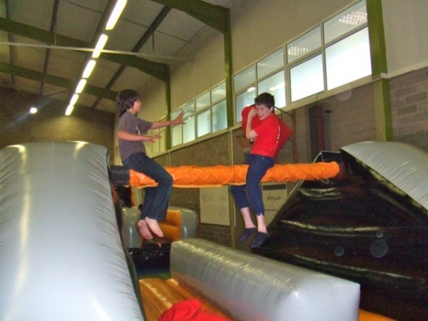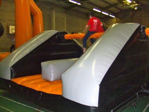 4.6(m)L x 4.3(m)B x 2.3(m)H. Putekrig ligner på gladiator duellen i formål, men her sitter deltagerne på an stang. Under seg har de en stor og myke landispute. Deltagerne utstyres med store puter og hjelmer. Formålet i denne putekrigen er å få den andre deltagerne til å miste balanse og faller ned på kjempeputen, mens du selv blir sittende. Veldig mange morsomme situasjoner oppstår i den oppblåsbare putekrigen.