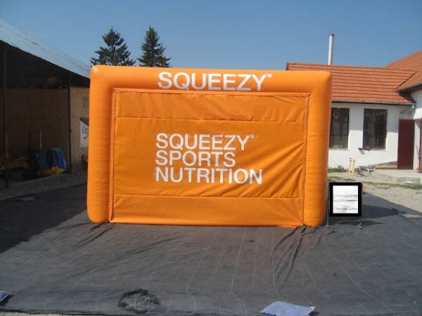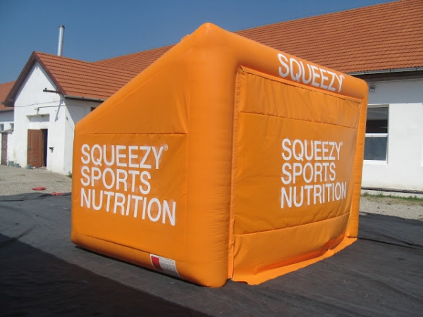Kunde Squeezy. Godt synlig salgsbod. Monteres på 5 minutter. Lett å bruke, trekker kundenes oppmerksomhet. Laget med lukkbar frontvegg . 4(m)L x 2,7m)H x 3(m)D.