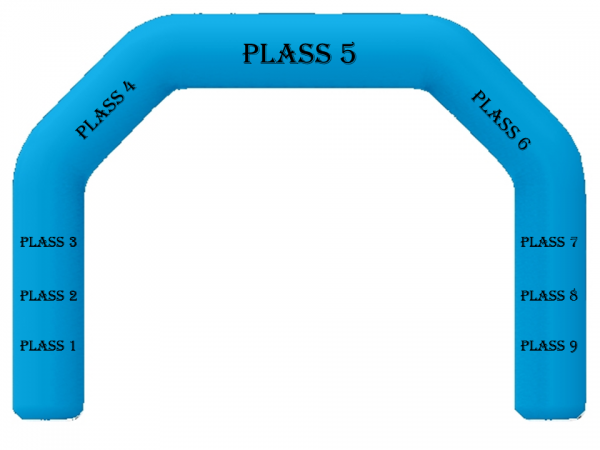 Bestill en skisse av oppblåsbar portal. Velg selv bakgrunnsfarge, og hva du vil ha på portalen, slik som klubblogo, navn på arrangementet, «sponsorplass» osv.