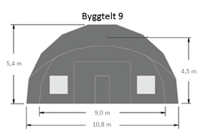 Innvendig mål: 9m(B) x 4,5m(H) Utvendig mål: 10,8m(B) x 5,4m(H) Lengde moduler på 6 og 9 m.