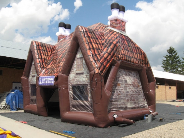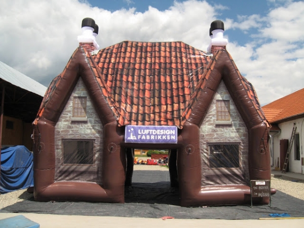 Norges første oppblåsbare pub. Kjøp inn for utleie. 8(m)L x 6,5(m)B x7,5(m)H. Egnet for 25-30 personer Pub1 med dobbel gavl har alle de samme detaljer som de andre pubene som takstein, pipe og murstein på veggene. Puben har også flere arker og store sidevinduene for å slippe inn naturlig dagslys. To store innganger gjør det enkelt og gå inn og ut av puben og få en naturlig lufting av puben.