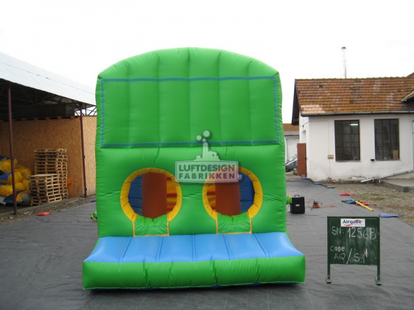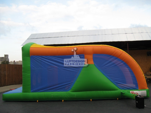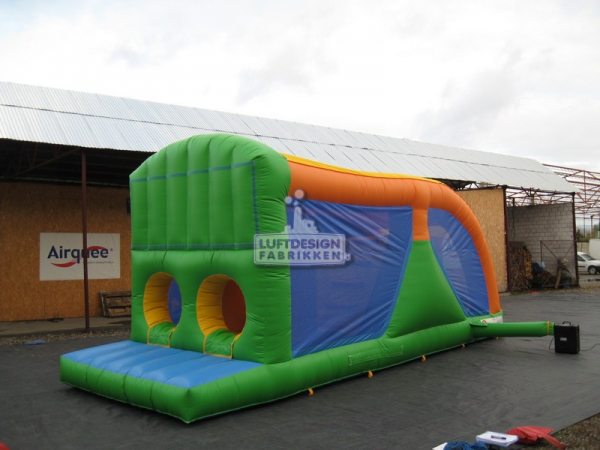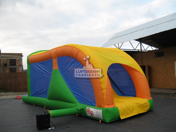 8.5(m)L x 2.8(m)D x 3.3(m)H. Denne hinderløypen passer godt i mindre lokaler og inneholder alle kjerne elementer som sklie, trapp, og hinder du må passere.