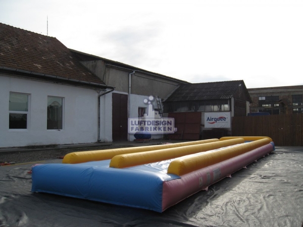 13(m)L x3(m)D x 1(m)H . Har du en bakke som du tror det ville vært moro å skli i? Da er denne oppblåsbare sklien trolig det du er på jakt etter. Legg den i en bakke og leken er i gang. Det er veldig moro, litt som å ake om sommeren egentlig.