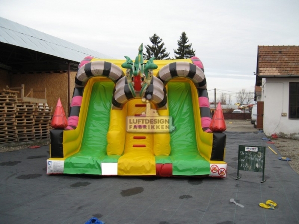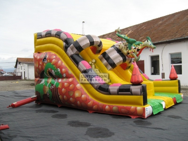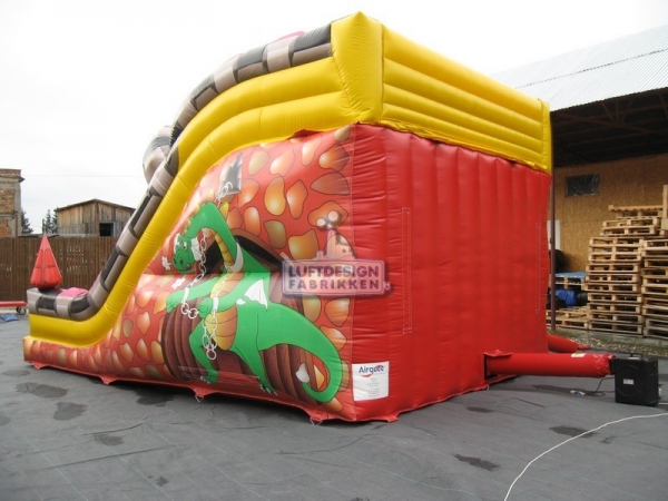 6.3(m)L x 4.6(m)D x 3.8(m)H. Det kiler i magen, litt skummelt, mest moro. Køen avvikles dobbelt så fort med dobbel oppblåsbare sklier, I oppblåsbare sklier er reglene at kun ett barn kan skli om gangen, her har du to skieløp så da kan 2 barn skli samtidig.
