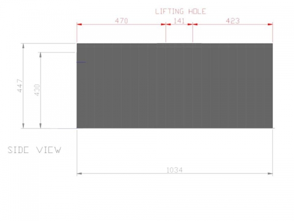 Innvendig mål: 9,7m(L) x 3m(B) x 4m(H) – 29m² Utvendig mål: 9,7m(L) x 4m(B) x 4,5m(H) – 38m²