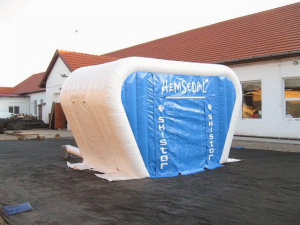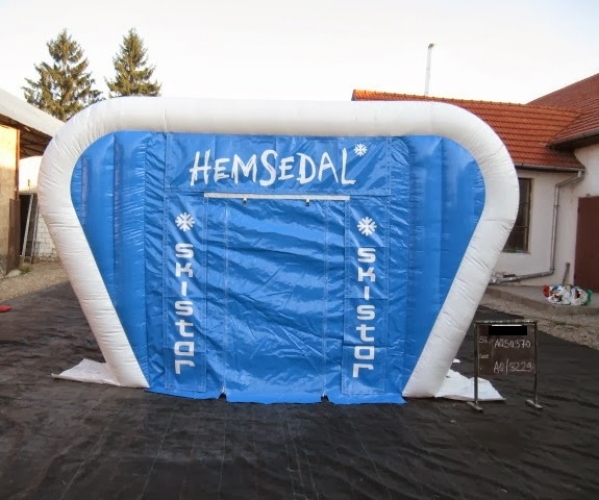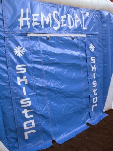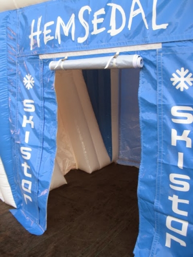 Kunde: Skistar Hemsedal. 5(m)L x 3(m)D x3(m)H. Oppblåsbart starttelt med mulighet for sponsor profilering. 2 i 1 produkt. Bakveggen kan brukes som seremonivegg.
