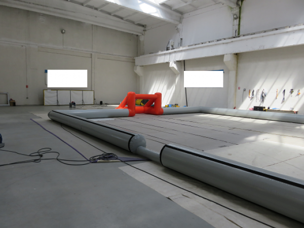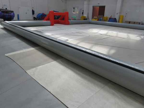 Oppblåsbare treerfotball baner leveres komplett med mål, alt i en del. Rull ut, koble til medfølgendevifte og treerfotball banen reiser seg i løpet av et par minutter.Samlet monterings tid 10 minutter, så er banen klar til bruk, enklere blir det ikke.Banene er 10 meter brede og 15 meter lange. Fotballmålene er1,5 meter lange og 1 meter høye.