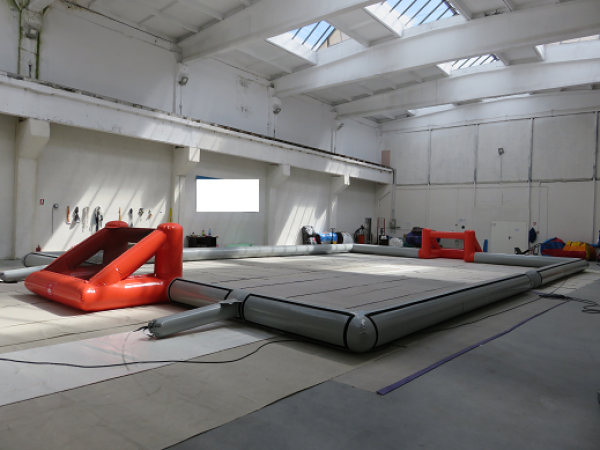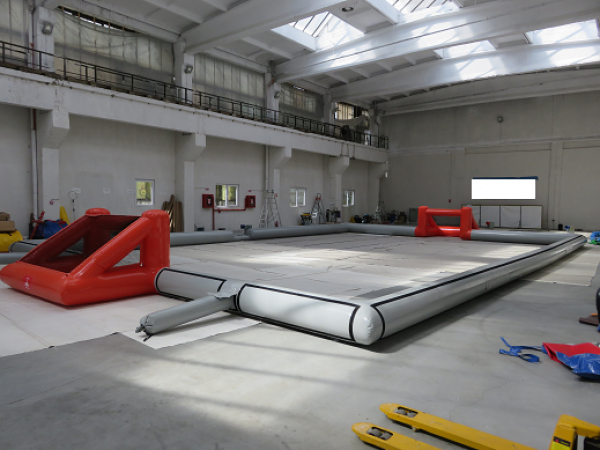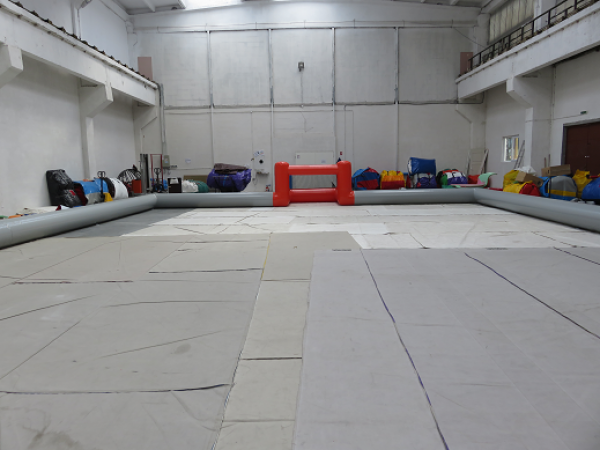 Oppblåsbare treerfotball baner leveres komplett med mål, alt i en del. Rull ut, koble til medfølgendevifte og treerfotball banen reiser seg i løpet av et par minutter.Samlet monterings tid 10 minutter, så er banen klar til bruk, enklere blir det ikke.Banene er 10 meter brede og 15 meter lange. Fotballmålene er1,5 meter lange og 1 meter høye.